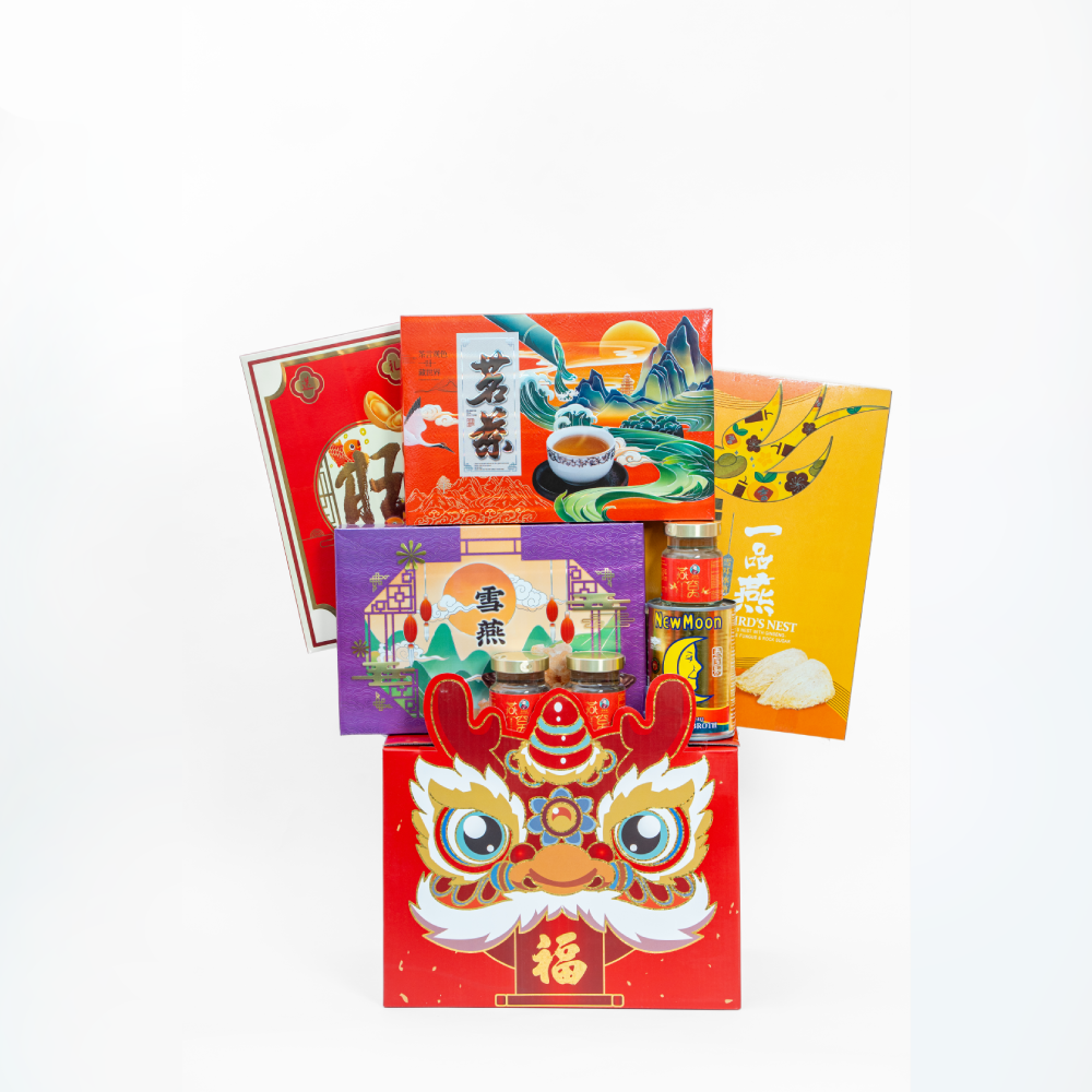 Brighten up any Chinese New Year visit with the Grandma Hamper 新春佳礼 – Prosperity Bird’s Nest & Golden Lion Gift Box. Wrapped in a bold red lion-dance design with touches of gold, this cheerful hamper is perfect for sending 恭喜发财 wishes to family, friends, and business partners.